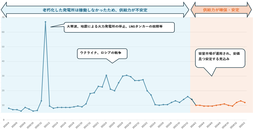 容量市場は急激な価格変動を防ぐための仕組みとも言えます。